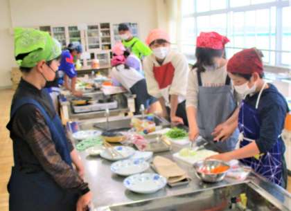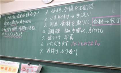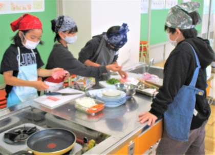 6年生の家庭科の授業です。今日は、待ちに待った調理実習です。色取り鮮やかな野菜炒めを調理しています。みんな包丁の使い方も上手ですね。どんな味になるか楽しみですね。