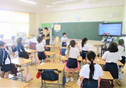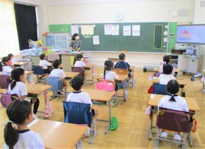 朝の会2 公開日 2023/06/01 更新日 2023/06/01 学校 1年生の朝の会の様子です。ちょうど、朝の歌を歌っていました。元気よく歌っている姿から私(校長)が元気をもらいました。ありがとう!