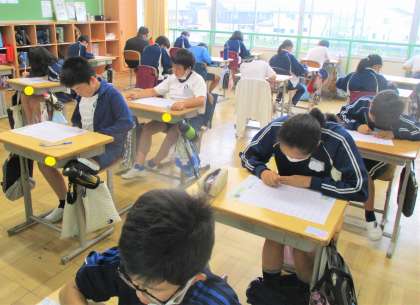 朝の様子1 公開日 2023/06/02 更新日 2023/06/02 学校 6年生の朝の様子です。自習の短い時間を活用して漢字テストに取り組んでいます。ほどよい緊張感に包まれています。週末、よいスタートです!頑張れ!