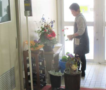 学校用務員さんがほぼ毎朝自宅で育てている花をもってきてくれて、校舎内に花を飾ってくださっています。感謝です。花が心が和みますね!