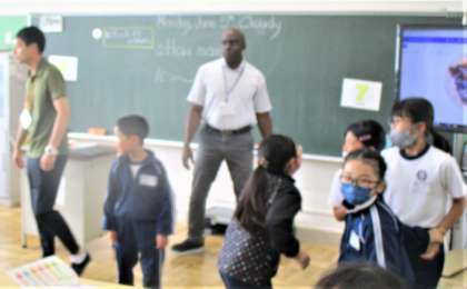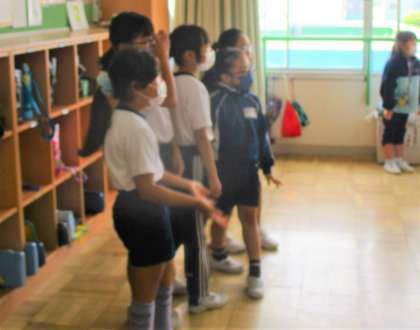 3年生の外国語活動の授業です。今日は、HOW MENY〜を活用して、英語での数の呼び方を学んでいます。実際にその数のグループをつくり、楽しく活動しながら英語に親しんでいます。