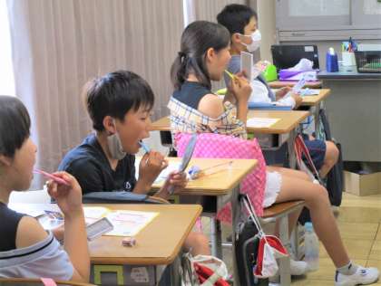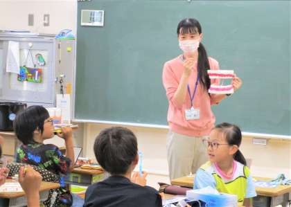 5年生の学級活動の授業です。今日は、自分の歯の磨き方を振り返り、正しい歯の磨き方について養護教諭からご指導いただきました。今日の夜から実践してみましょう!