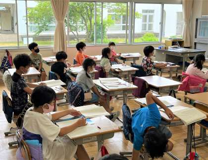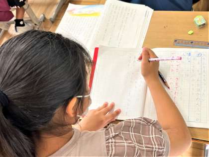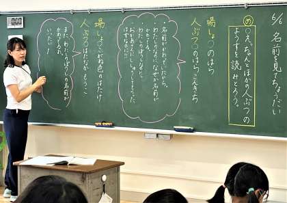 2年生の国語の授業です。「名前を見てちょうだい」を読んでいます。今日は、登場人物の意薄を比べながら読み取っています。頑張ってます!