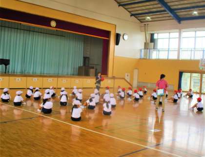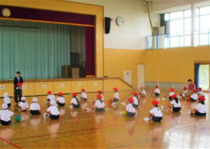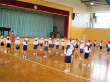 1年生の体育の授業です。ちょうどゲームのやり方を行儀よく聴いている場面でした。仲間たちの聴く姿が素晴らしいです。
