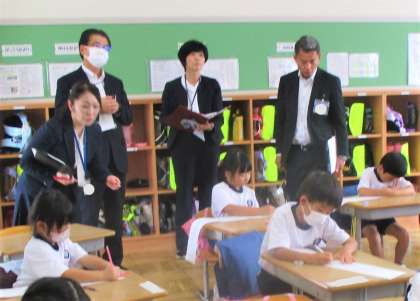 今日は4時間目の授業を県南教育事務所所長と人事課長の先生が参観されました。仲間たちが一生懸命精進している様子を見て、仲間の発表を気持ちとおでこを向けて「聴いている姿」や仲間に自分の意見を「発表する姿」、仲間全員が学習課題に一生懸命取り組んでいる姿にお褒めの言葉をいただきました。今後も、チーム和田の仲間と教職員が合気になって一層精進して参ります。ご指導ありがとうございました。