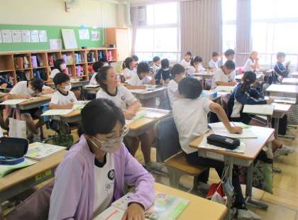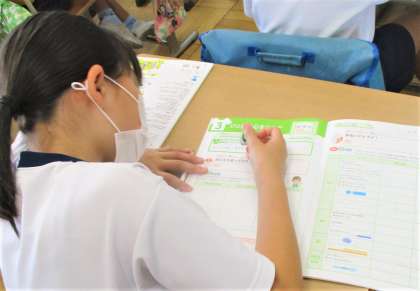 5年生の家庭科の授業です。衣食住の中で「衣」の学びになります。今日は、針と糸を使って毎日使えるものをを作るための学習です。どんなものを作製していくか楽しみですね。