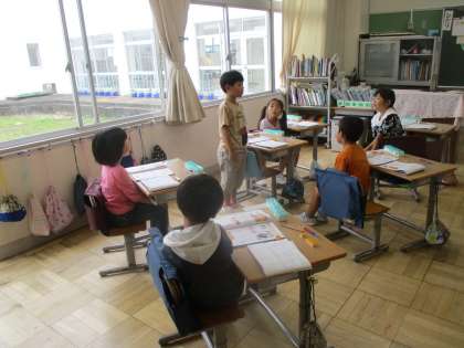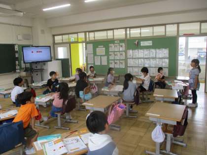 1年生の算数の授業です。「あわせていくつ」の単元です。たし算の学びです。みんな姿勢正しく、仲間が発表するときはおへそとおでこを発表している仲間にむけて発表を聴いています。当たり前のことが当たり前にできる仲間たちにプライドを感じました。素晴らしい!