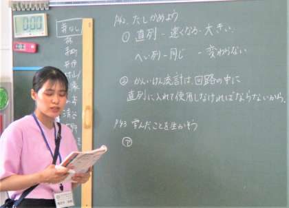 4年生の理科の授業です。今日は、単元のまとめをしています。電気の流れやつなぎ方について確認しています。みんな頑張れ!