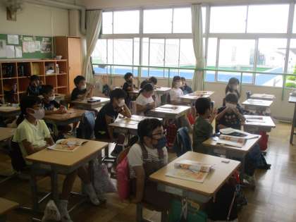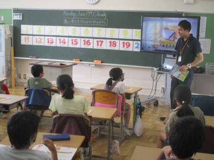 3年生の外国語活動の授業です。今日は、英語での数字の呼び方を学んでいます。頑張れ!