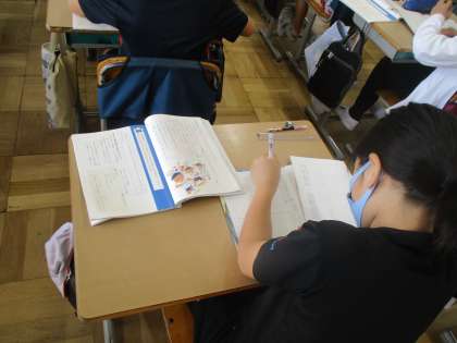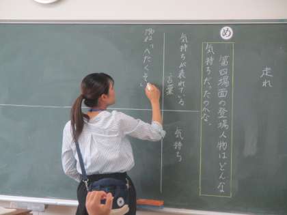 4年生の国語の授業です。「走れ」を読んでいます。今日は、第4場面の登場人物の気持ちの変化を読み取っています。根拠を明確にしながら心情を読み取ります。頑張れ!