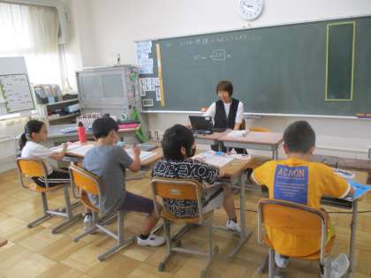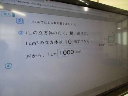 さわやか学級の算数の授業です。今日は、体積についての学びです。みんなで協働的に仲良く学んでいます。