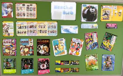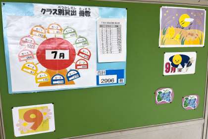 学校司書さんが、新しい図書を登録し、丁寧に並べてくださいました。また、図書室廊下側掲示物の模様替えもしてくれています。もうすぐ秋です。秋は「読書の秋」とも呼ばれています。読書に勤しみましょう!