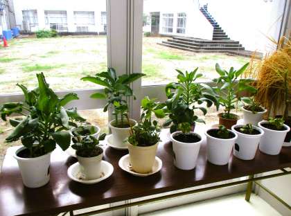 昇降口前に、観葉植物が置いてあります。毎日、仲間たちの登校を迎えてくれています。