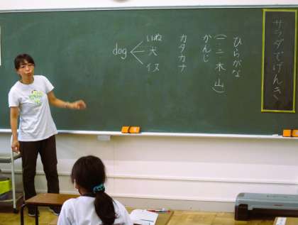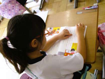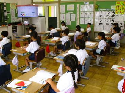 1年生の国語の授業です。「サラダでげんき」を読んでいます。今日は、デジタル教科書を活用して、朗読している内容を指で追っています。内容の理解につながりますね。みんな一生懸命取り組んでいます。