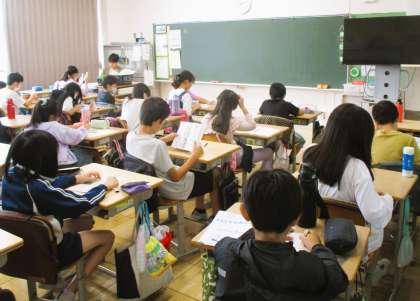 5年生の朝自習の様子です。読書をしたり、ドリルをしたりしています。月曜日の朝から集中していますね!