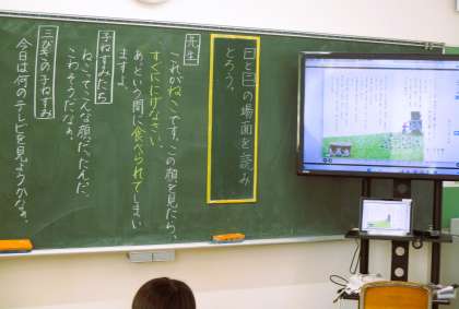 授業の様子8 公開日 2023/09/25 更新日 2023/09/25 学校 さわやか学級の国語の授業です。「ニャーゴ」を読んでいます。今日は、2・3段落に何が書いてあるかについて読み取っています。興味深く取り組んでいます。頑張れ!