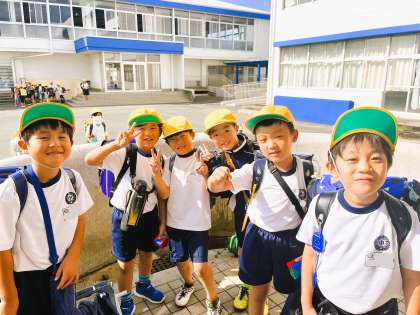 1〜4年生は今日は5時間終了後下校です。下校前にハイ、チーズ!