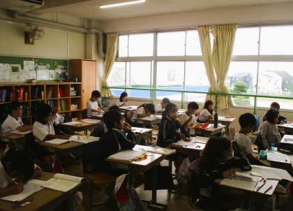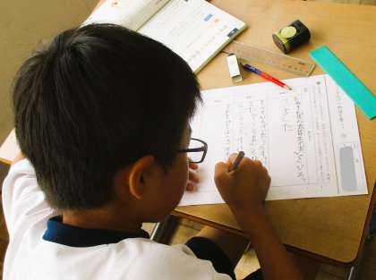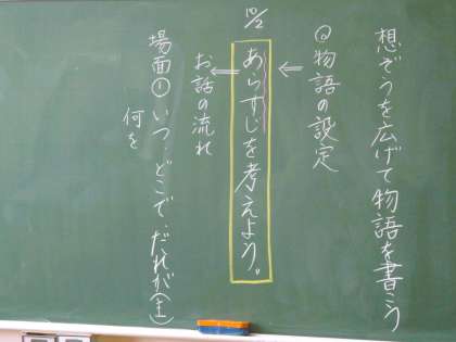 3年生の国語の授業です。想像の物語を書く単元です。今日は、自分なりの物語のあさすじを考えています。難しそうですが、みんな一生懸命考えています。頑張れ!