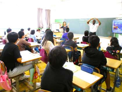 6年生の外国語の授業です。今日は、まず動物名が出てくる動画で英語で党物名の確認をしました。そのあと、自分の好きな動物とどこに住んでいるかを英語表現で伝え合います。頑張れ!