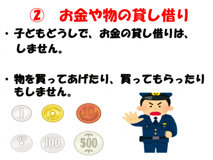 今日は、生徒指導主事から表記の件についてパワーポイントを活用して具体的なお話をしてもらいました。1学期の反省として、2学期の生活に生かしてほしいと思います。