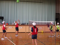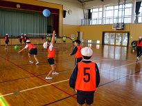 ソフトバレーボールをしています。ラリーを続けてうまく相手のコートに返せるようチームで声を掛け合い、頑張っています。
