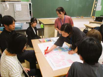 放課後、本日行った研究授業の研究協議会を全職員で実施しました。低・中・高学年ブロックに分かれ、KJ法を活用して授業の良さや工夫点、改善点を協議しました。最後に各ブロックから話し合われた内容の発表があり、学び多い協議会となりました。