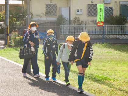 今日は西門で仲間たちを迎えました。安全に登校することができました。ありがとうございました。