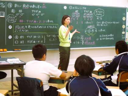 6年生の算数の授業です。比について学んでいます。5年生で学んだ割合の学びが基盤になります。みんな集中して学んでいます。いい雰囲気で学習することができています。素晴らしい!「授業は先生と児童で創るもの」ですね。