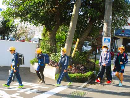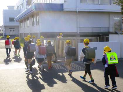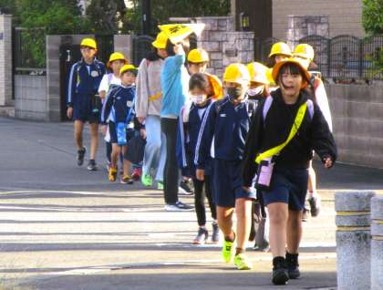 秋晴れの良い天気の中の登校です。