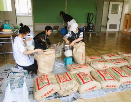 8時過ぎから、PTA役員の方々で、5年生が稲刈り体験したお米の仕分け作業をしてくださっています。本日、希望したご家庭には仲間たちが持ち帰ります。新米です。美味しいご飯です!