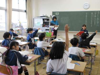 2年生の国語の学習では、みんなの前で発表をしました。上手に発表をすることができています。