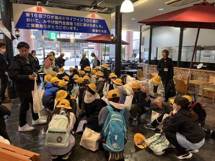 さすが。 5分前に集合し、バスに乗り込んで宿に向かいます。