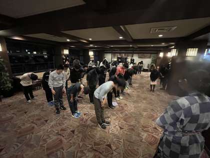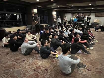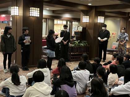 入館式にて実行委員代表から旅館の方々へのお世話になる気持ちを伝えました。「礼を尽くす」ことのできる仲間たちです。もちろん、先生方の関わりのお陰様です。