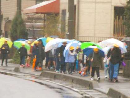 雨の中の登校です。地域の先輩方や保護者の皆様の見守りで、今朝の安全に登校することができなした。雨の中、ありがとうございました。