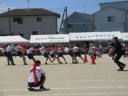 第44回運動会特集19 公開日 2024/05/28 更新日 2024/05/28 学校 6年生の「宮ヶ原の戦い!」です。それぞれのチームの気迫が伝わってきました。 みんなで力を合わせて引っ張りました。