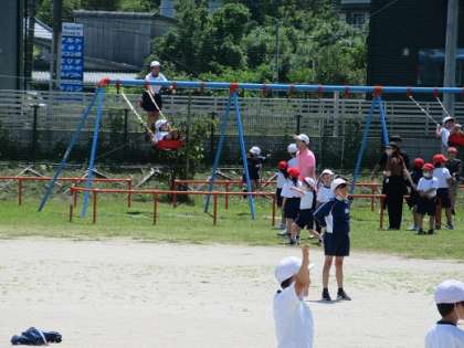 校庭で先生や友達と元気に遊ぶ子供たちの姿が見られました。