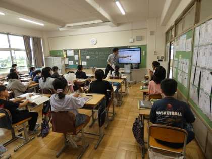 6年生の授業です。2組は外国語、1組は社会の学習に一生懸命取り組んでいました。