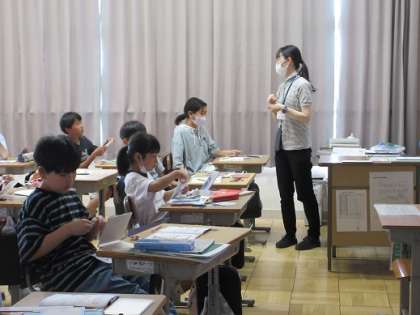 5年生の授業です。 養護教諭の先生と歯みがきの学習をしました。