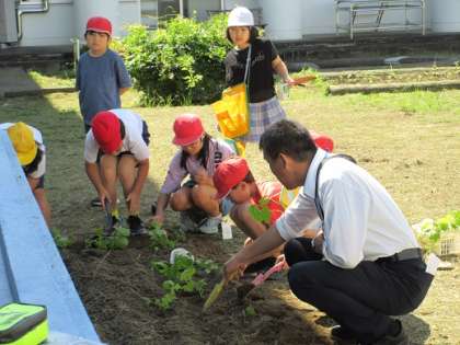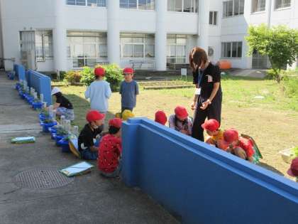 ゴーヤの苗を植えたり、植物のようすを観察したりしていました。