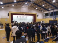 各学年で作ったプレゼントを1年生に渡しました。その後、全校児童で一緒に校歌を歌い...
