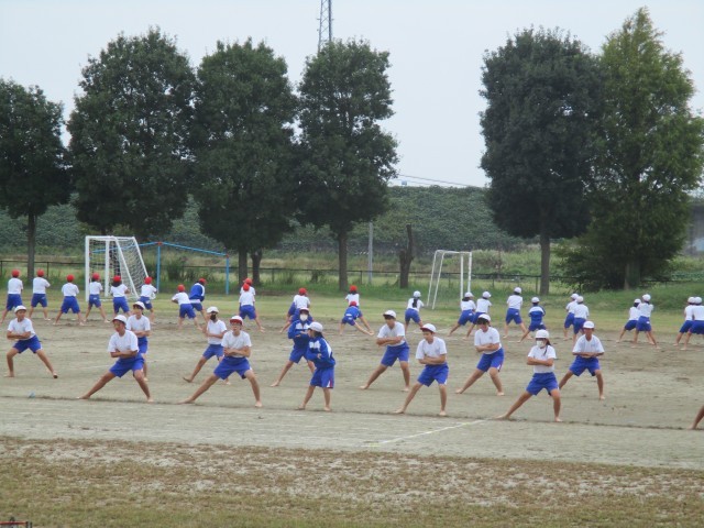 今日は、5、6年生児童が裸足でのソーラン練習。