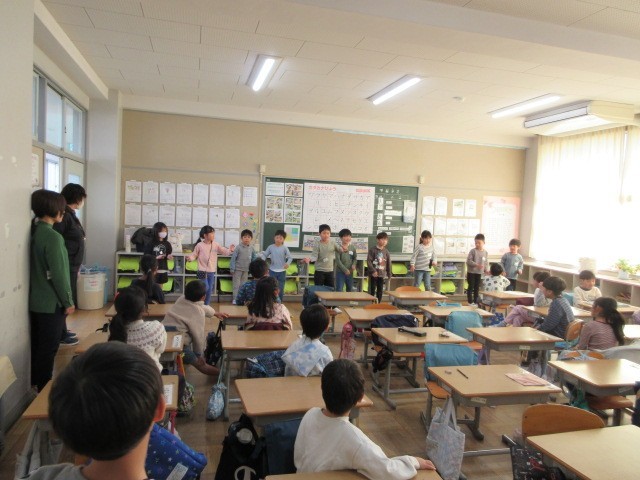 1年生の教室で、運動会のダンスのお披露目会をしていました。