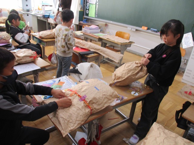 2年教室では、ダイナミックな作品づくりが行われていました。