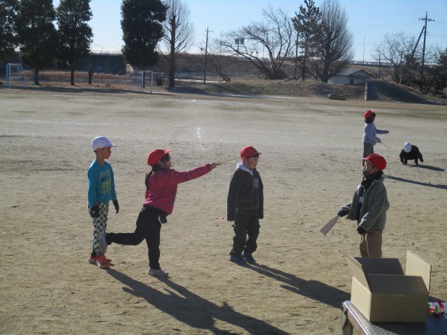 1年生が校庭で「羽根つき」に挑戦していました。