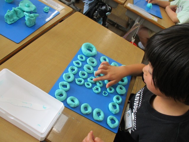 笑顔で互いの作品をたたえ合いながら、作っていました。
