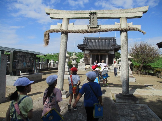 新山の日枝神社に行きました。成り立ちや本殿のことなど、日枝神社のひみつを知りました。お参りではどんなことをお願いしますか?という質問に、自分の欲しいものを口にする子もいましたが、「世界のみんなが幸せに...