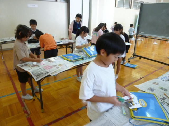 修理をしたり、さらに裏側に絵を描いたりする作業スペースではもくもくと取り組んでいました。