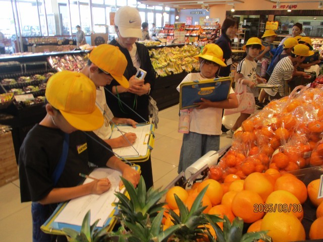 今日は社会科の学習で、ヤオコー藤代店へ見学に行きました。グループに分かれて店内見学やバックヤード見学をしました。普段は入ることができないお店の裏側に潜入できた子供たちは、大興奮でした。買い物に行くときとはまた違った視点で店内を見て回り、びっしりメモをしていました。副店長さんに質問をしたあとは、おすすめの商品の試食もあって、大喜びの子供たちでした。