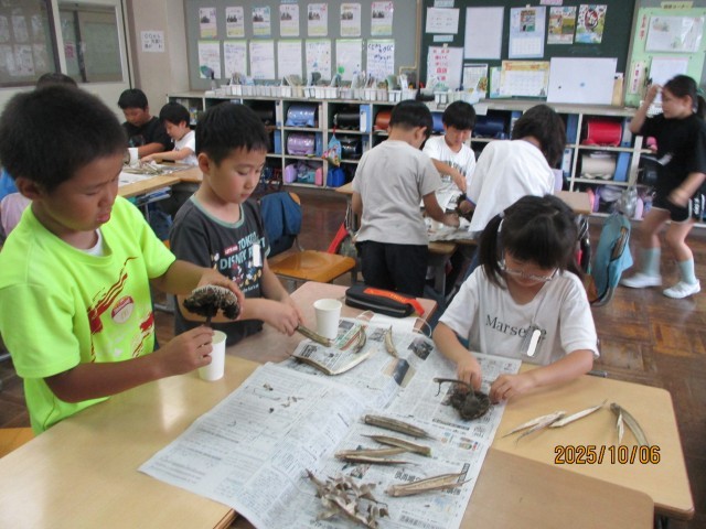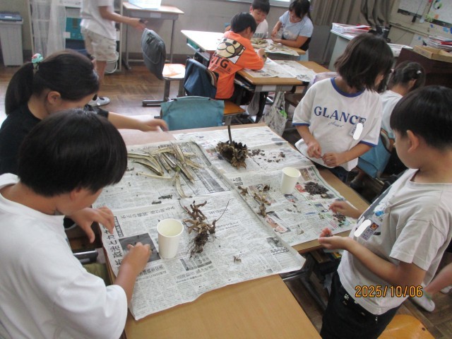春から観察してきたオクラやヒマワリにたくさんの種ができました。予想外にたくさんできた種にみんなびっくり。友達と協力して種をとることができました。