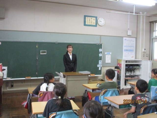 3年生には、今日から4週間の間教育実習の先生が仲間入りです。たくさんの友達が話しかけたり、一緒に遊んだり学習したりしてなかよしになりました!